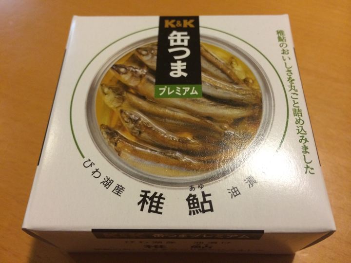 おつまみは琵琶湖産稚鮎の油漬。湯煎して食べる。