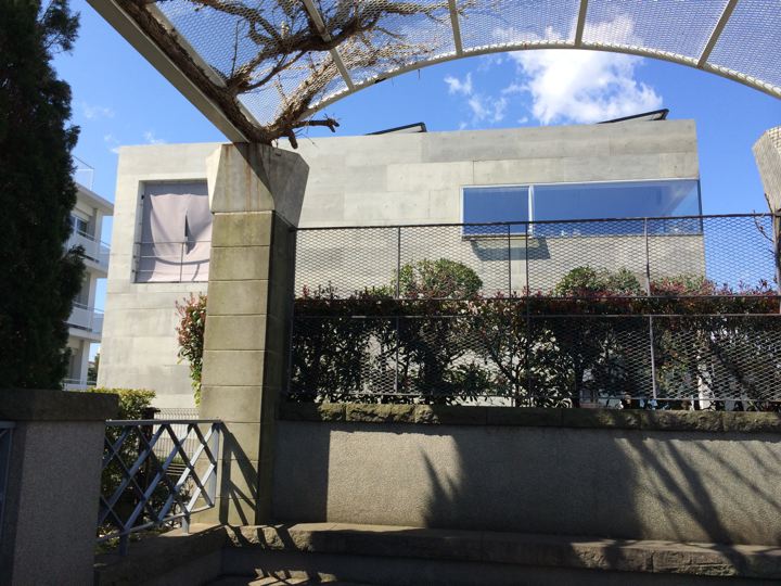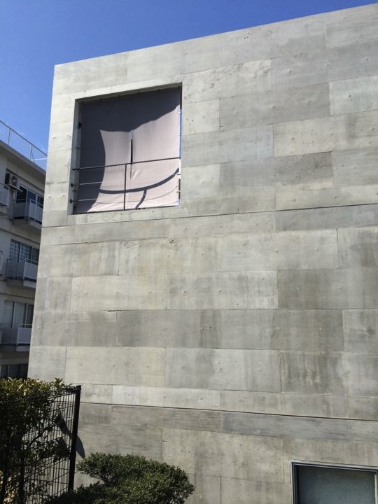 おそらく公園からテラスが丸見えだから膜を張ってるんですな。イヒヒ