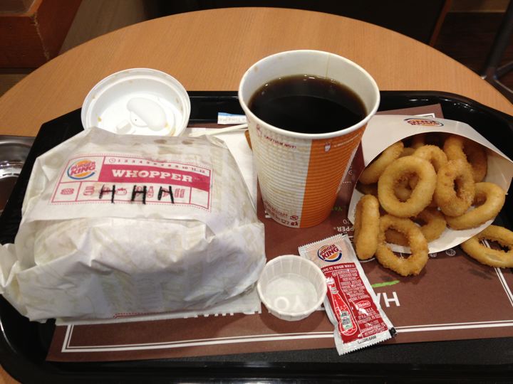 イチローくんはここで待っとけ、で、バーガーキングさんでブランチ。うみゃ〜