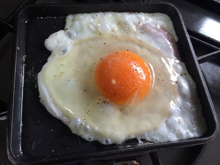 この目玉焼きの黄身の焼具合が難しいのです。