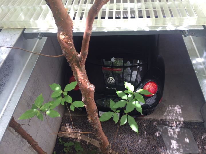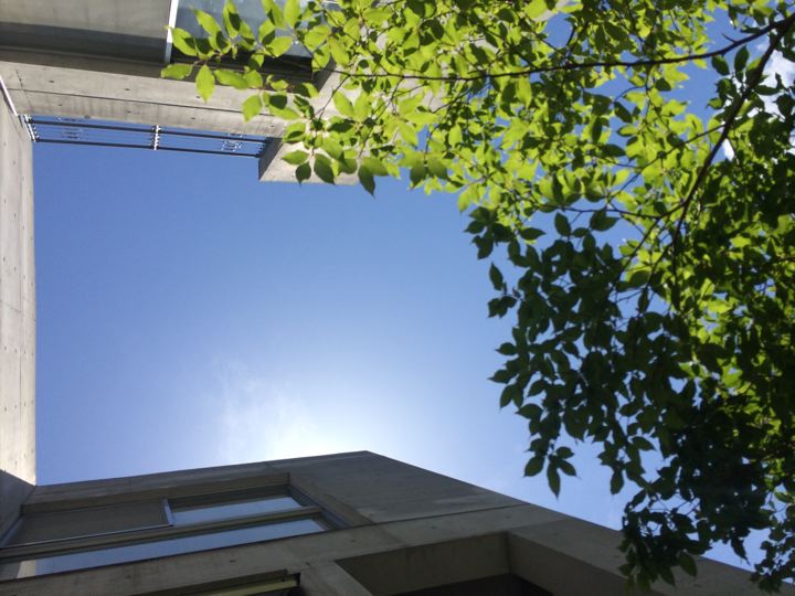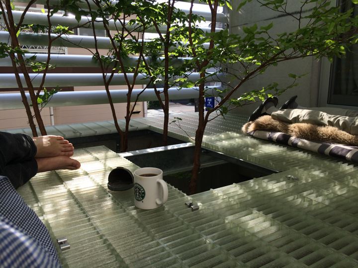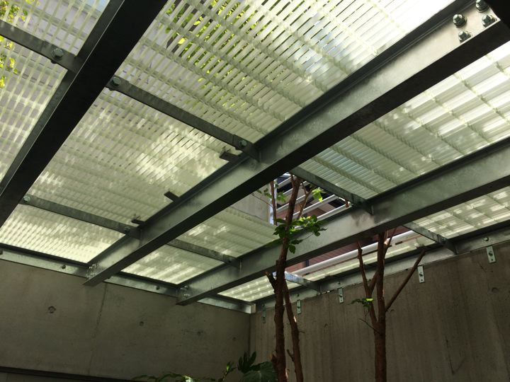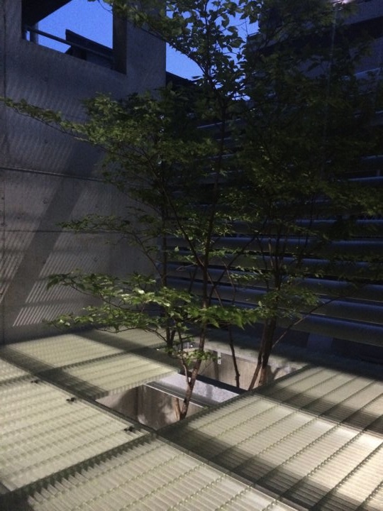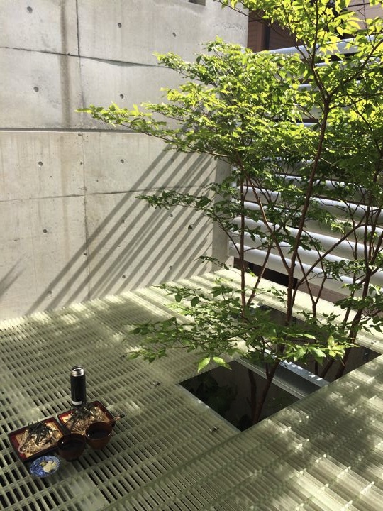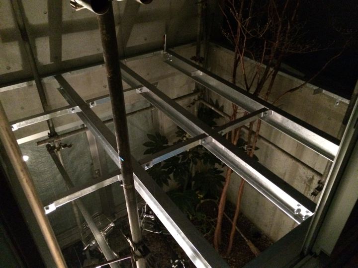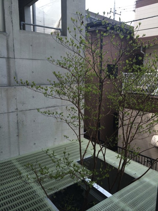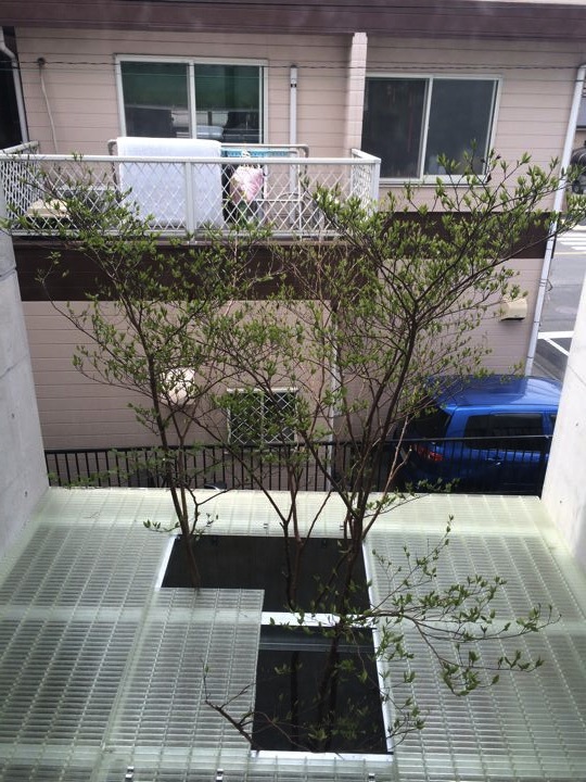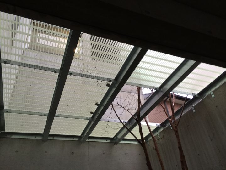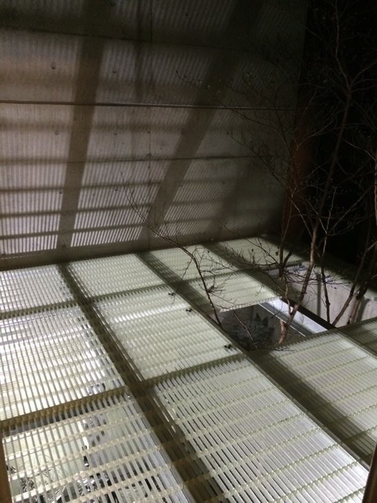 クリアな材料を敷いてみたら、上からの光の反射で1階の中庭が