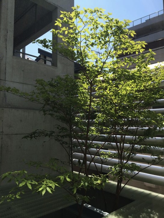 (ヒメシャラくんは夏は葉が茂り木陰を作って暑さを防いでくれます)