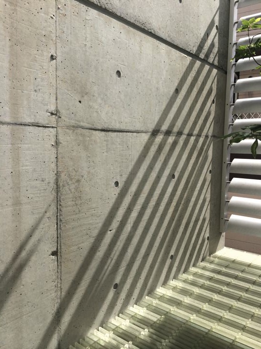 昼は日差しの加減でルーバーの織り成す影が