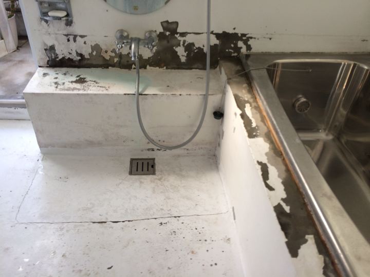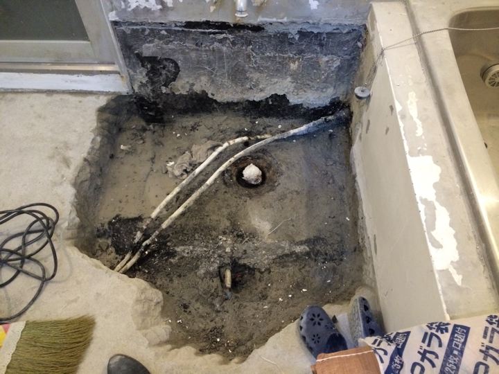 洗面器を置くエプロンもぶっ壊して、昔のアスファルト防水層もきちんと処理して・・・
