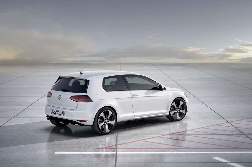 2013年3月のジュネーブモーターショーでデビューした市販モデルのVolkswagen Golf VII GTIのスペックはエンジンが1984cc 4気筒ターボTSIで最高出力220馬力/4,500rpm&最大トルク258lb-ft/2,500rpmを発生。6速マニュアルトランスミッションか6速ダブルクラッチトランスミッションDSG。なぜか最高出力を230馬力にパワーアップさせたperformance packとゆ〜ややこしいのもあるらしい。0-100km/h加速6.5秒、最高速度246km/h。燃費はGolf6 GTI比18%改善の39.2mpg。CO2排出量139g/km(6速マニュアル仕様)ドイツでは5月からデリバリーがスタートで日本でも2013年内の発売が予定されているとの事です。気になるボディサイズですが全長4268×全幅1799×全高1442mm。全長が55mm、ホイールベースが53mm延びる一方、フロントオーバーハングは12mm短く。1442mmの全高は、旧型よりも27mm低められ、最低地上高は標準モデルに比べて15mmのローダウン。13mm広い全幅でワイド&ローの印象を強めているらしいが、デカ過ぎ!全然「羊の皮を被った狼」じゃないじゃないの!