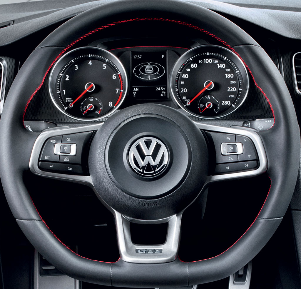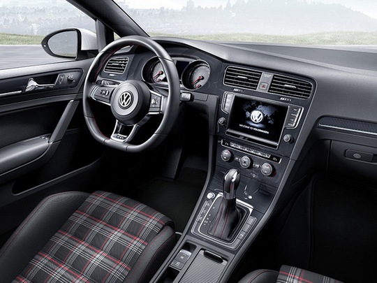 外観上のディテール。フロントの3本のフィンは初登場かと思いきや、6でもついてたんですね。リヤのハニカムグリルってどうなんでしょうか?あとマフラーはやはり左よせの2本出しがずっと好きでしたが今のトレンドはこちらなんでしょうね。ぬ〜。そしてついにあの赤いブレーキキャリパーにまでGTIのロゴが・・・。おこちゃまっぽくなってきた。