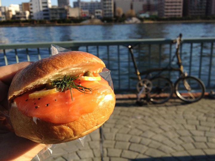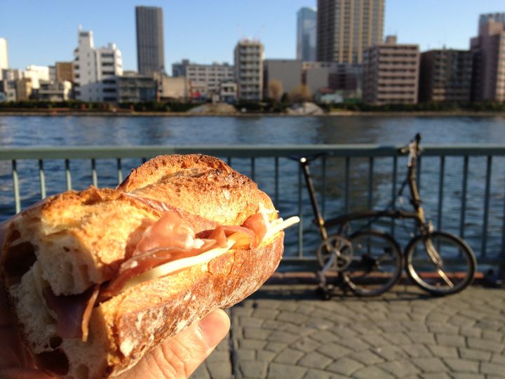 結局いつもの様に、築地折峰さんでパンを買って洗濯中に隅田川で食べる事に。