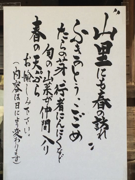 この時期ならば、旬な山菜なんかも期待できちゃうのね。むひ〜