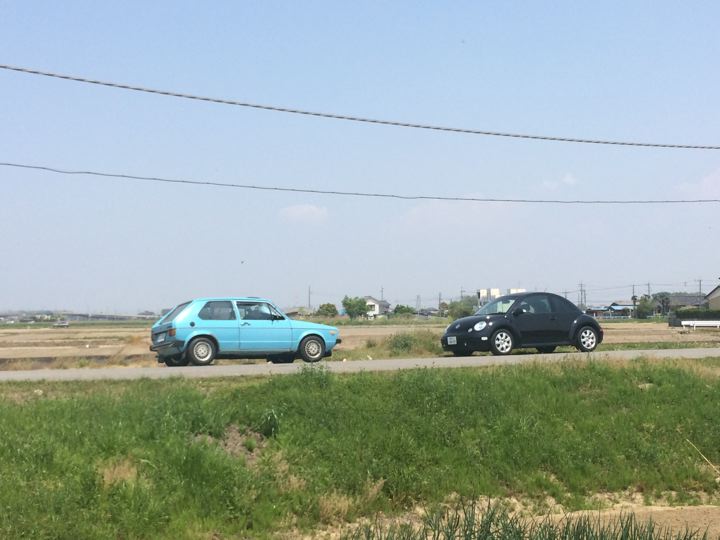 おか〜カラーの初代Golf1が!ここでミスターが撮影中は