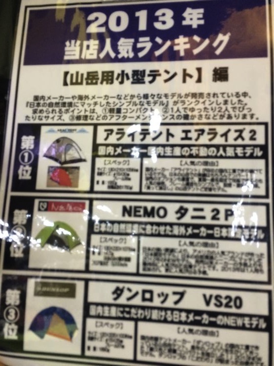 むむぅ。地元のアウトドアショップも銀座よりいいかもかも。
