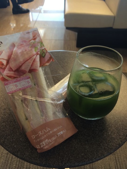 いつもの様に、無料ラウンジモーニングの青汁と
