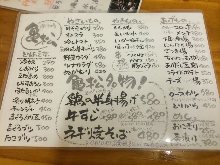 仕方なく、スライドして、近くの大衆酒場亀松さんへ。