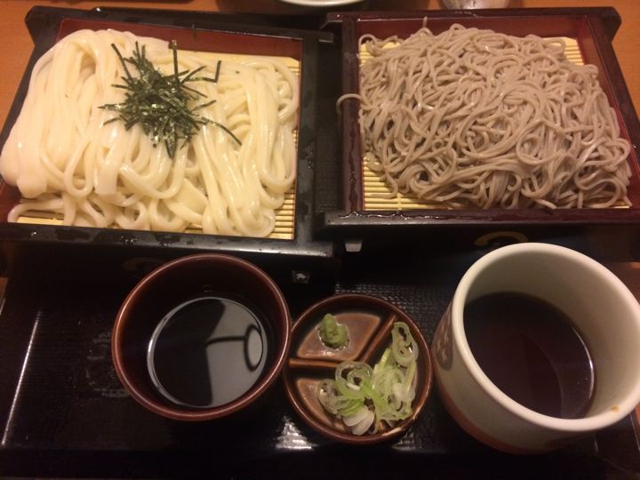 で、夜はご家族で、味の民芸さんのうどんと蕎麦。