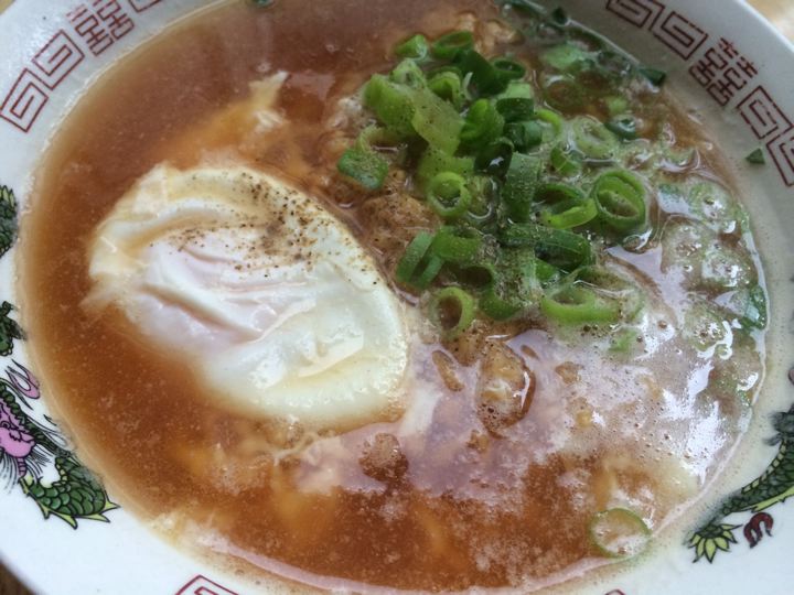 もちろん卵落として、葱入れて、胡椒と岩井の胡麻辣油を入れます。