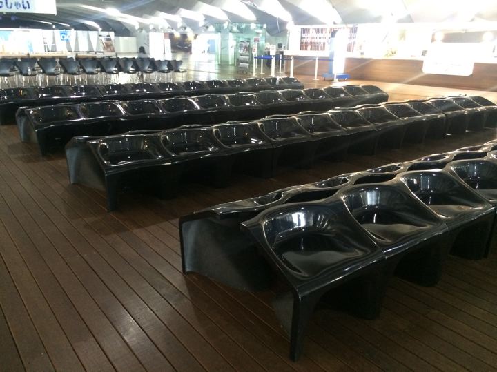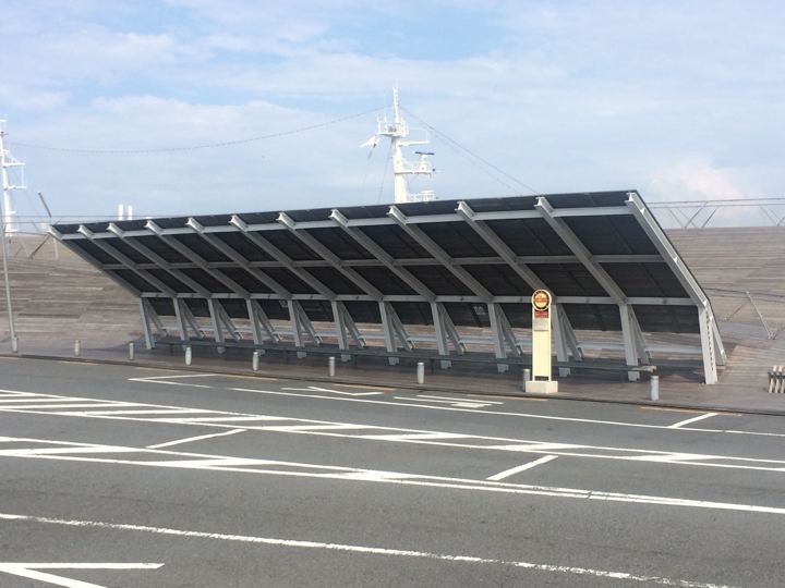 バス停やベンチの屋根からして斜めってる!イヒヒ