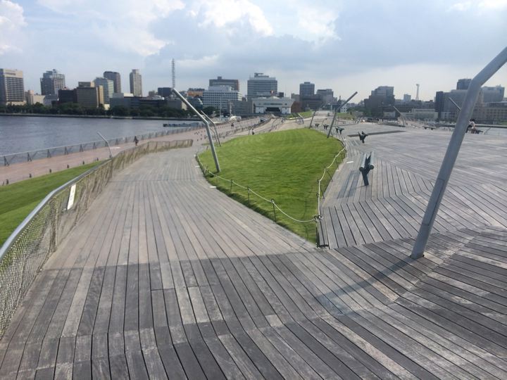 気持ちいい屋上広場でした。くじらの背中ってゆ〜のか。