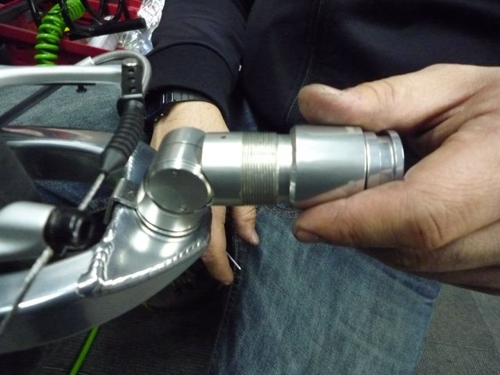 自分でやって失敗したサイコンのセンサーをつけてもらう。