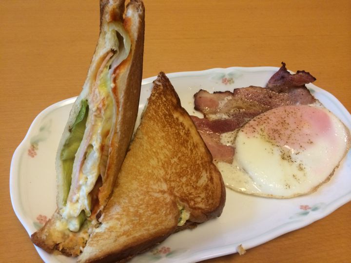 ベーコンエッグ添え。うみゃ〜!