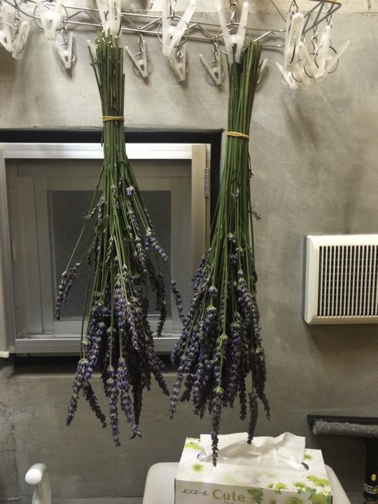 お風呂に入る前にハーブを干しました。