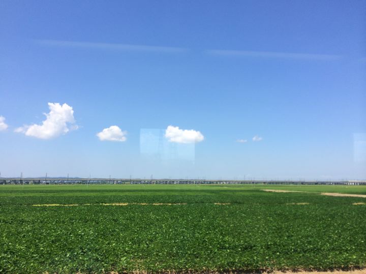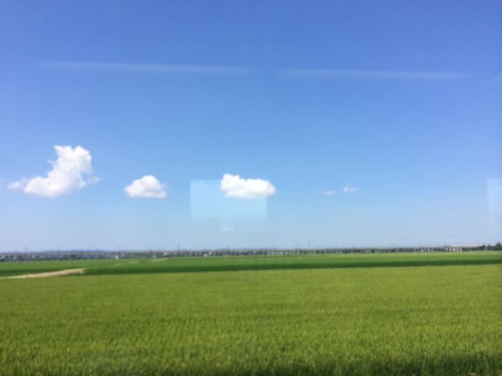 たんぼの向こうには北陸新幹線の線路が・・・