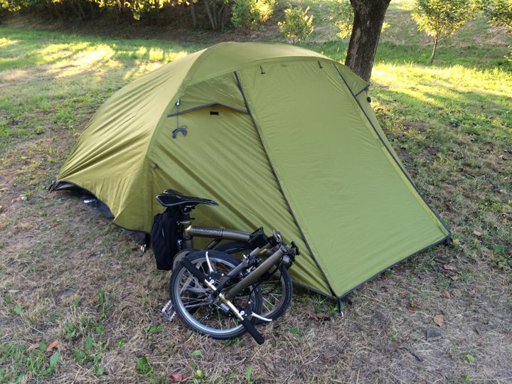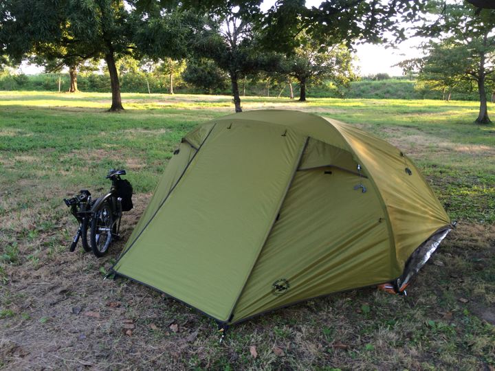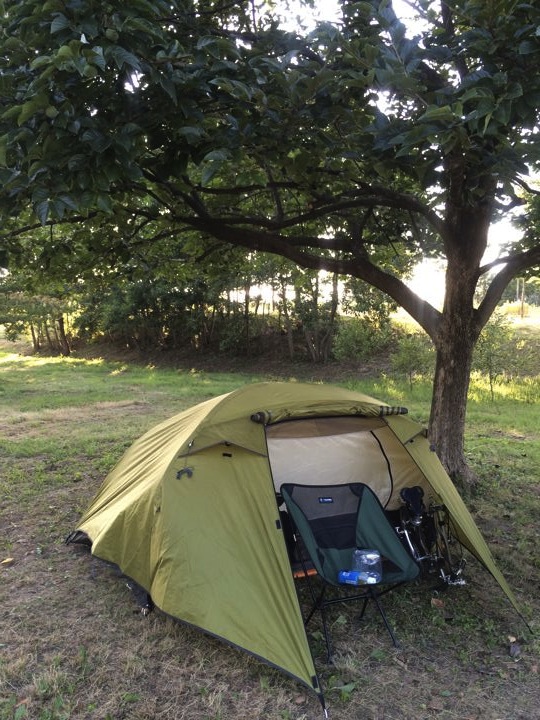 汗だく状態でなんとかテントを張って、はやく温泉かシャワー浴びたい!
