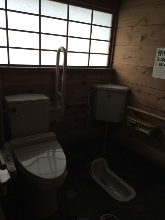 面白いトイレだなぁ。木造にポリカの窓。