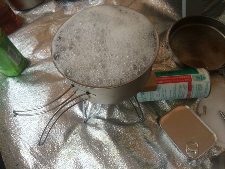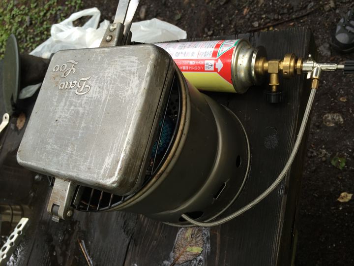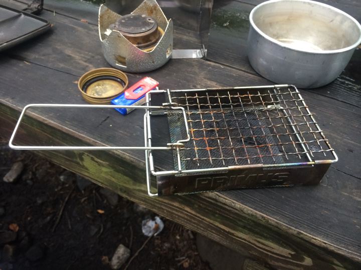 アルコールストーブ?で、焼く、ryoさんsatomiさんバウルー。