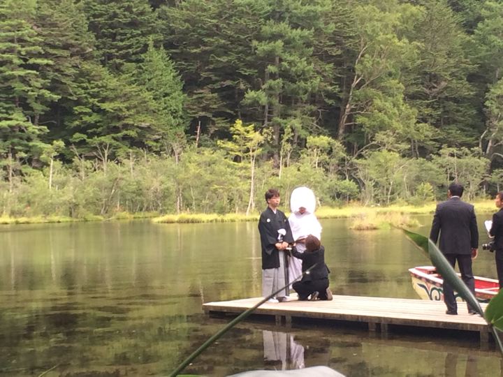 そして明神池でなぜか、か、結婚式が!
