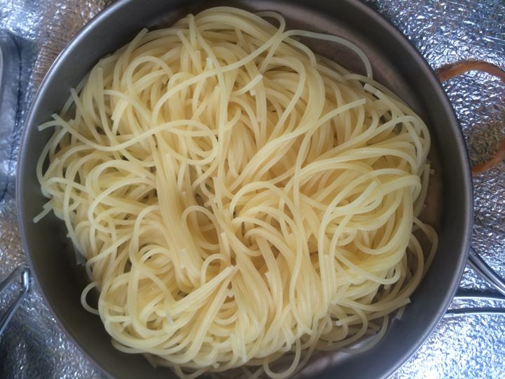 パスタを茹でます。