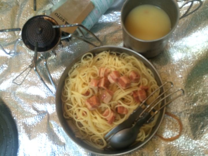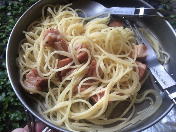 厚切りベーコンパスタ!う、うみゃ〜!