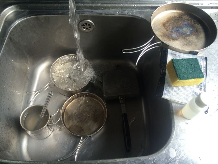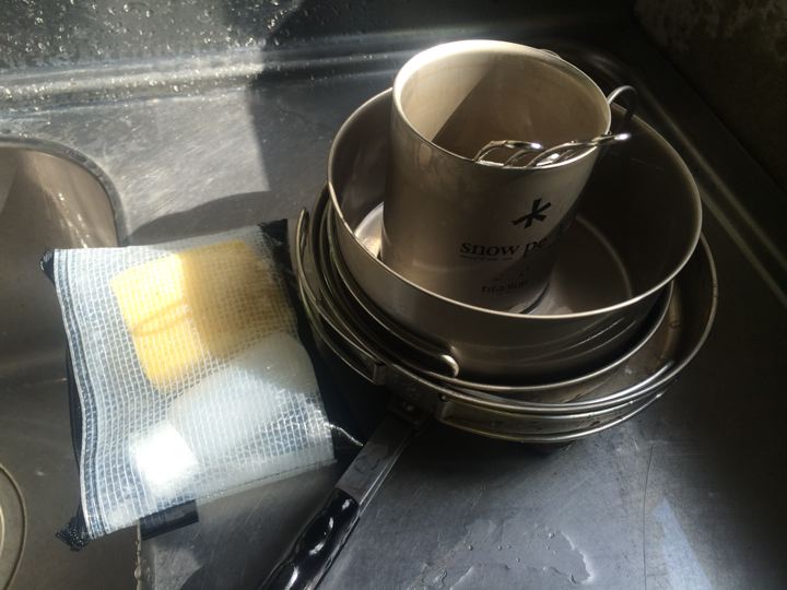 恒例のスポンジと洗剤をお借りしての洗い物。