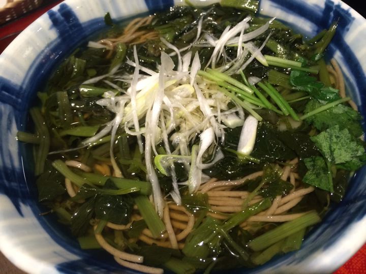 痛風のおじいちゃんは山菜蕎麦でした。