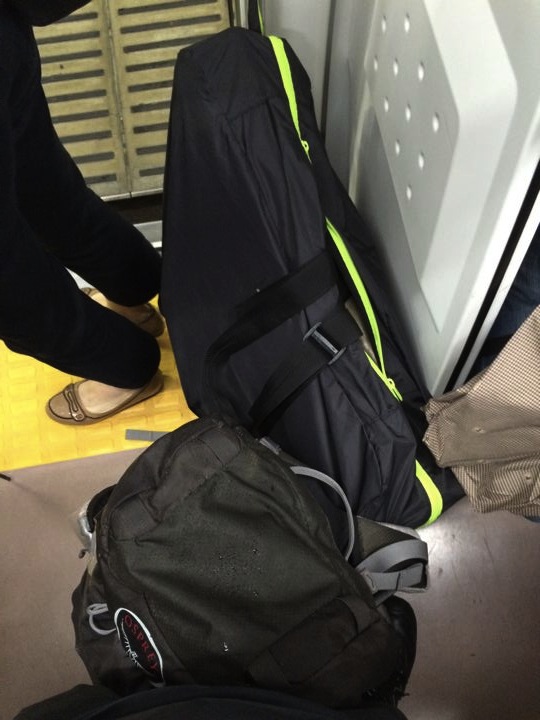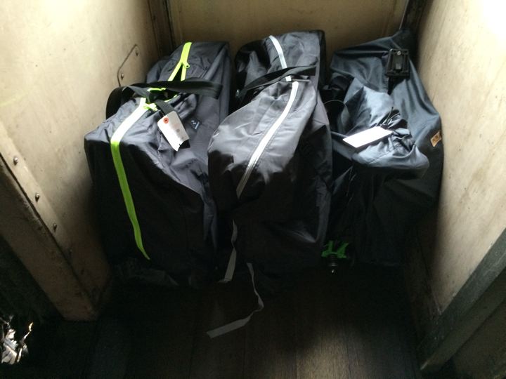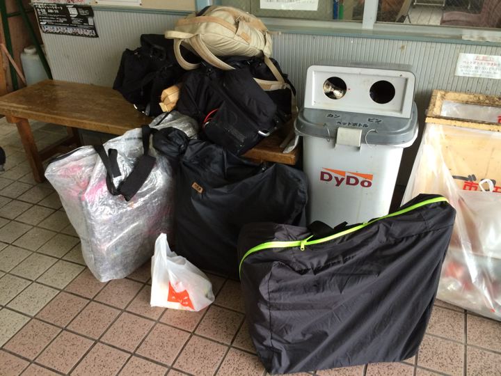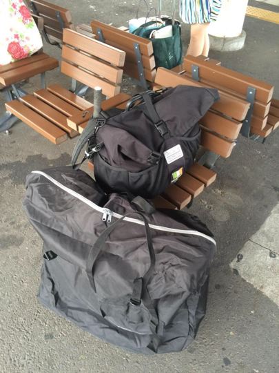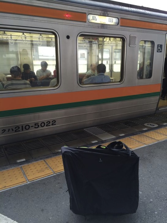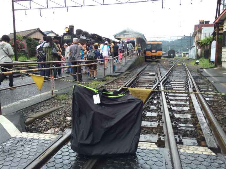ブロちゃんを広げて雨の中、新金谷駅まで自走!