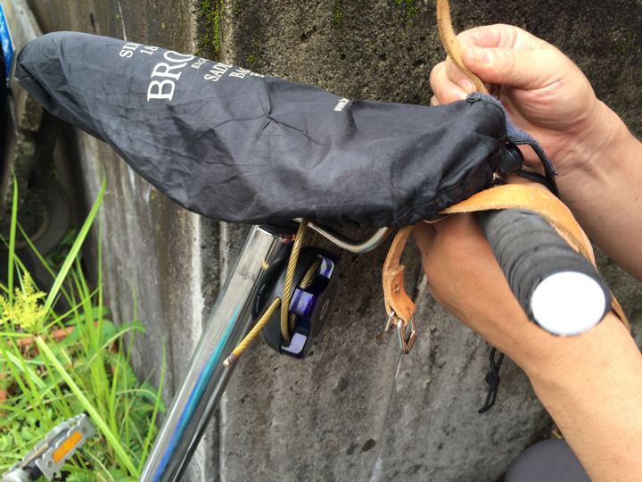 レザーサドルだから、ちゃんとブルックスのサドルカバーしてる。イヒヒ