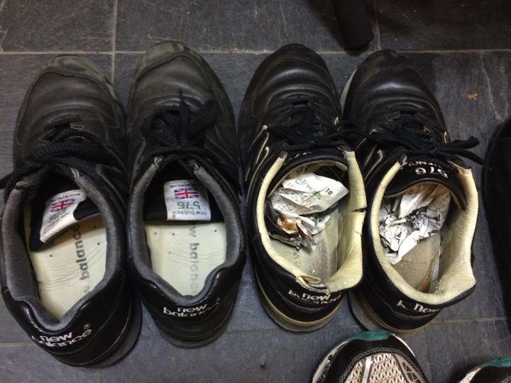 ゆったんが言ってた新聞紙を丸めて靴の中に入れた!