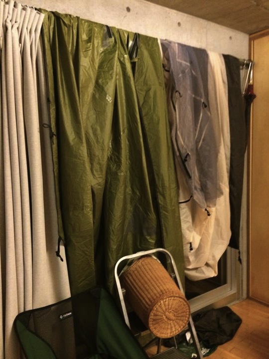 テントや濡れたおば〜部屋の備品を上手に干していました。