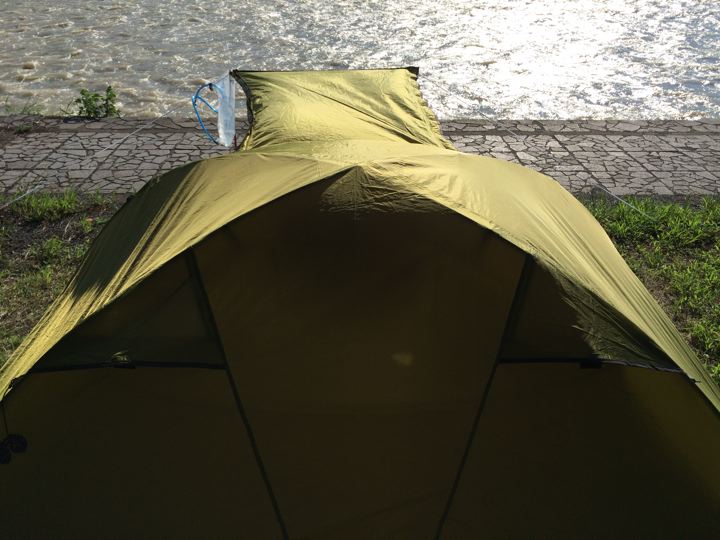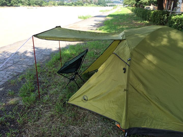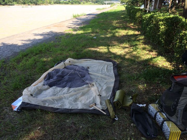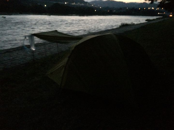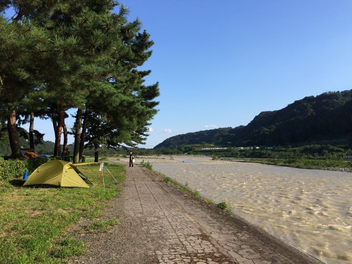 なぜか川岸沿いには僕ちゃんしかテント張ってません。笑