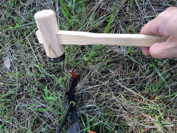 モンベルさんのこのハンマー。木製で軽くてGOOD。