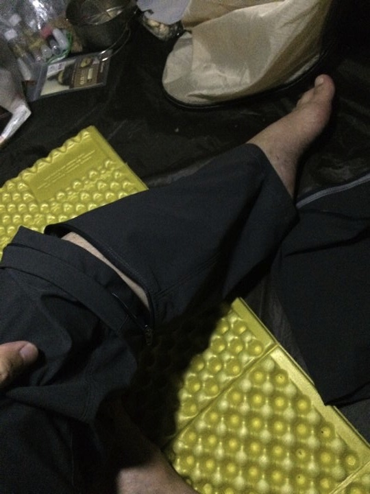 少し肌寒くなってきたのでモンベルパンツの裾を戻します。
