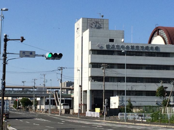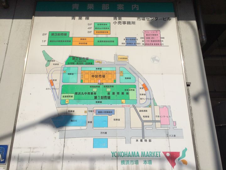 横浜中央卸売市場に到着。魚市場じゃなくて青果市場なのか?むむぅ。