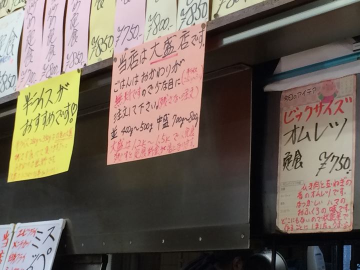 メニューも凄い量。全体的にかな〜り大盛りのご様子。