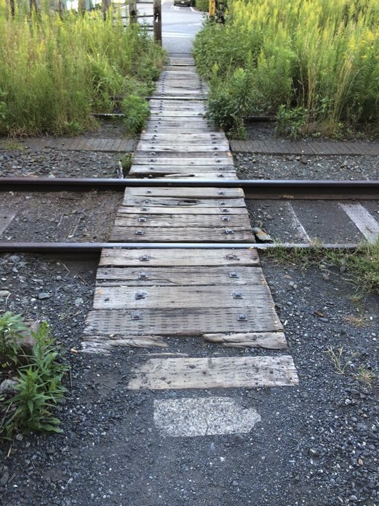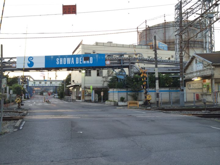 踏切の向こうはすぐ工場みたいです。