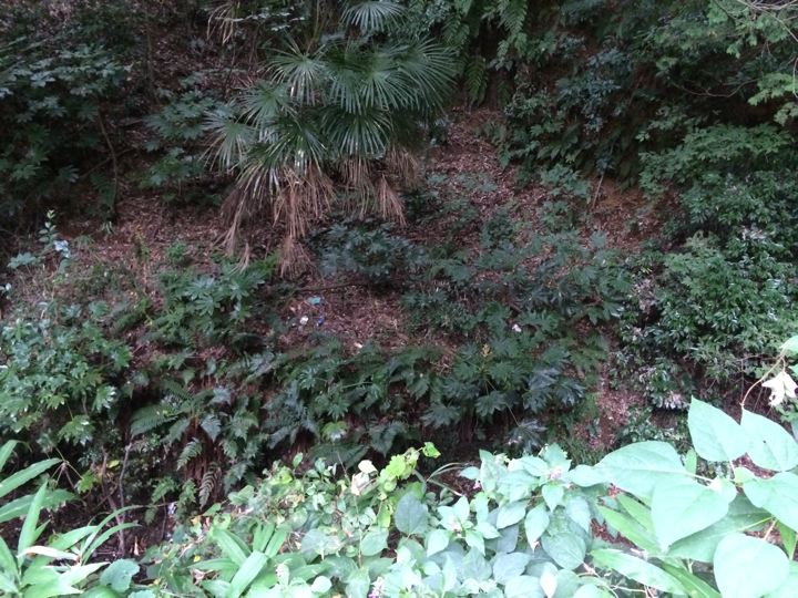 道が細くなって獣道。