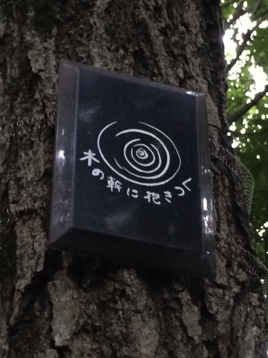 「木の幹に抱きつく」