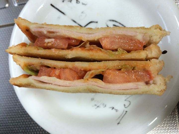 本日のモーニングは、ピザペー、レタス、スラチー、ハムバウルー!