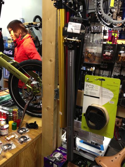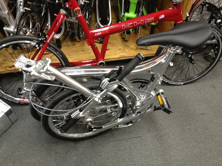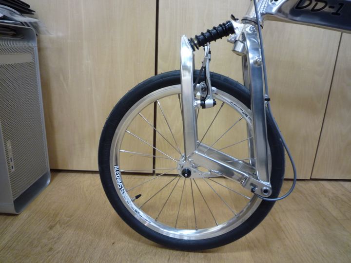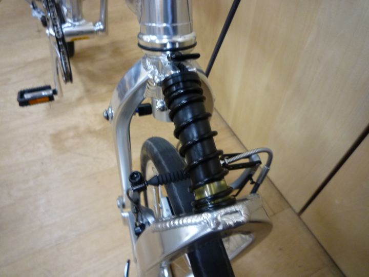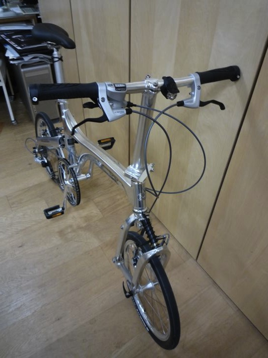 簡単な取説や折りたたみと展開を教えてもらいました。やはり折りたたみではBromptonにはかないませんね。えぐい折れ方しますがちょっと慣れるまでは大変です。