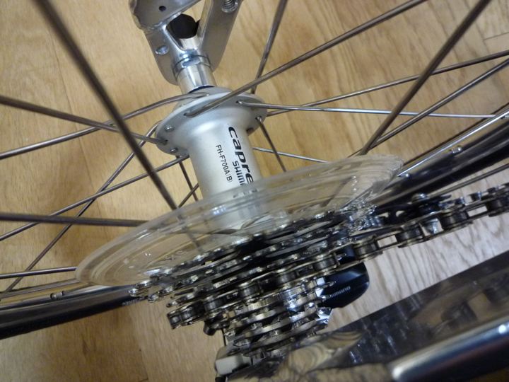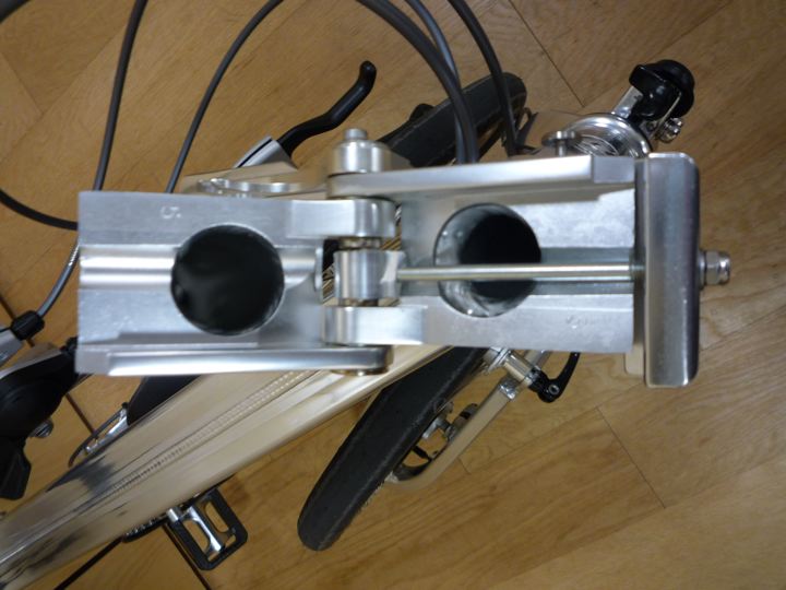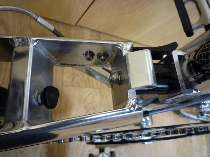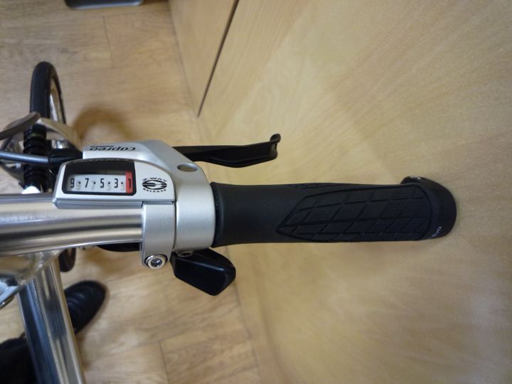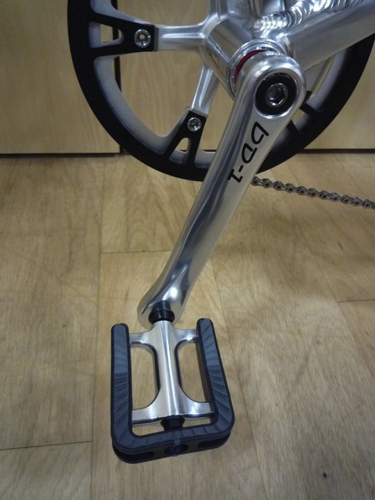 ペダルが妙に安っぽいが、スロースポットさんで聞いてみたら、通勤で使う人が多いらしく靴が傷まない様にこのペダルらしい。むむぅ。