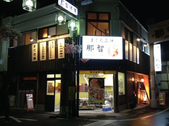 再びお船で海を渡って、検索した食べログハイスコアなまぐろ三昧那智さんへ。