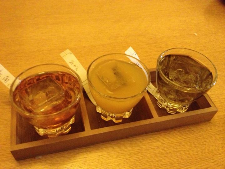 まずはお酒!日本酒の飲み比べセット!うみゃ〜!