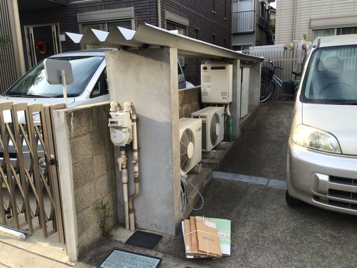 給湯器やエアコン室外機やガスメーターを建物から離してる。